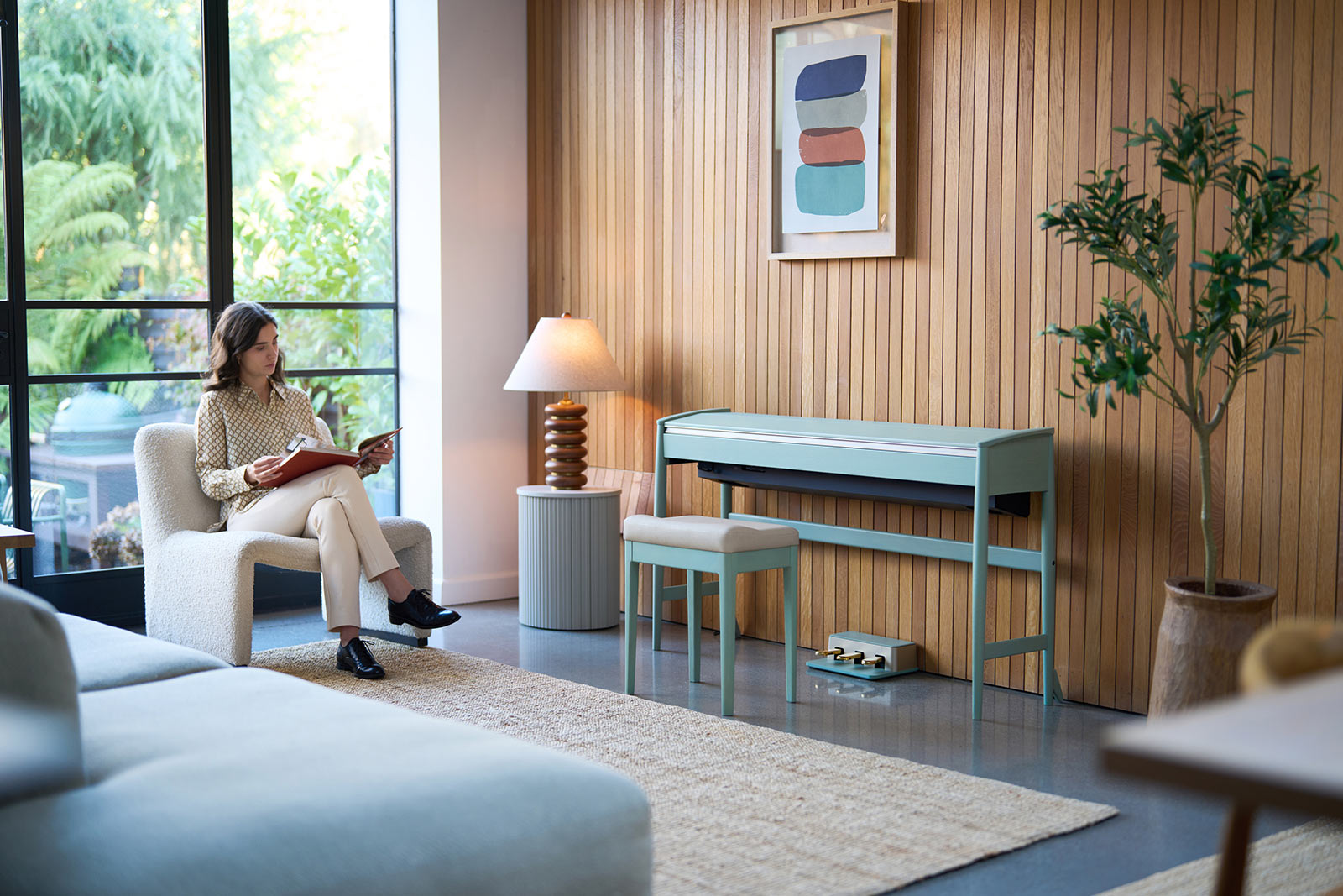 兩種櫃體風格和五種顏色、符合人體工學設計的琴椅,可為任何空間帶來低調的優雅。